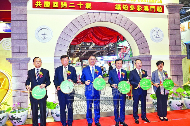 為慶祝澳門特區(qū)成立二十周年,旅遊局特意於旅博會設立《共慶回歸二十載,繽紛多彩澳門遊》特別展覽,以七個篇章,全方位及多角度展示澳門在“一國兩制”成功實踐下持續(xù)豐富的綜合旅遊資源和產(chǎn)品,以及全力構建“世界旅遊休閒中心”的成果。同時舉辦抽獎活動,向旅客宣傳澳門特區(qū)成立二十周年。
