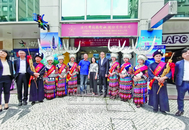 為加強貴州與澳門旅遊業(yè)界的交流合作,促進兩地旅遊產(chǎn)業(yè)發(fā)展,貴州省文化和旅遊廳澳門營銷中心授牌儀式暨旅遊形象店正式啟動。澳門中國旅行社旅遊業(yè)務部總經(jīng)理潘榮標表示,預料今年澳門到貴州人數(shù)較去年升百分之三十,是次合作主要是透過該門市向本澳居民介紹貴州的景區(qū)和景點,以點對點形式進行推廣,更能加深認識。