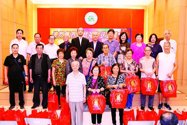 六個(gè)僑界社團(tuán)在歸僑總會(huì)會(huì)址禮堂向僑界弱勢群體五百七十三名受惠人士派贈(zèng)節(jié)慶福包