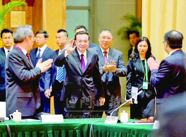 李克強在澳門東亞運動會體育館會見澳門社會各界人士並合影