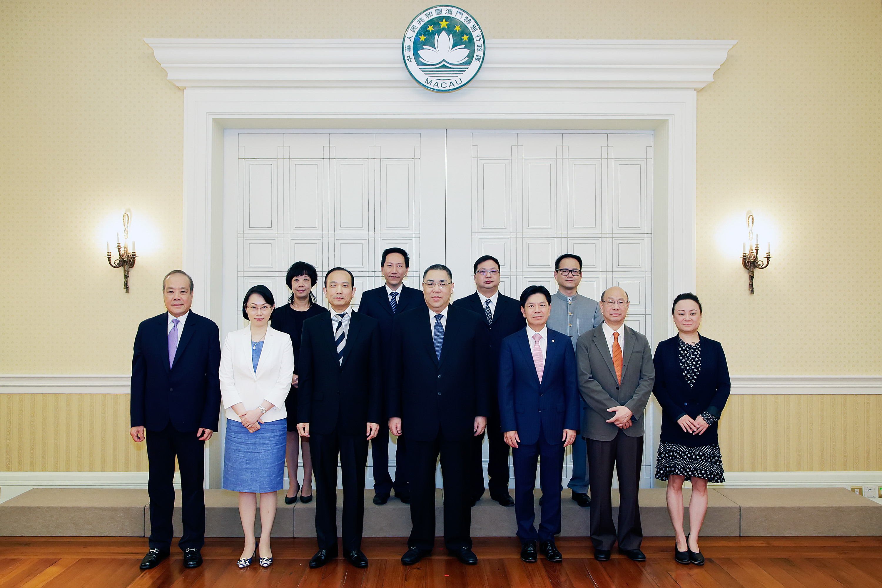 澳門特別行政區(qū)行政長官崔世安(第一排中)與