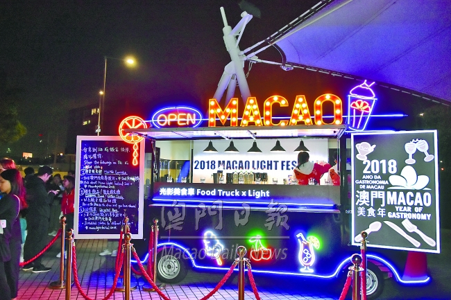 第三條路線“尋味歲月”,途經(jīng)嘉模堂區(qū)龍環(huán)葡韻及新地點(diǎn)氹仔街市、北帝廟及北帝廟前地等。北帝廟前地的“尋找記憶的味道”展演,讓觀眾了解澳門不同年代的飲食文化和習(xí)慣,體現(xiàn)澳門“創(chuàng)意城市美食之都”對(duì)美食文化的傳承與創(chuàng)新;氹仔街市的流動(dòng)性投影表演——“驚艷味蕾”,則展示澳門多元美食,呈獻(xiàn)一場(chǎng)饕餮盛宴。