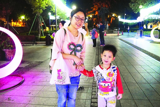 居民鄭女士帶同小孩前來感受氣氛,但感覺部分地點(diǎn)的整體觀感稍遜色,周邊環(huán)境相對(duì)較平淡,期望當(dāng)局下年續(xù)辦時(shí),可把特別的燈飾或光影效果放在平日較冷清的地區(qū),吸引居民、旅客專程前往。