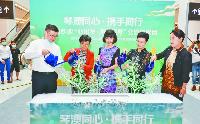 “心出發(fā) · 澳遊橫琴”首發(fā)團(tuán)一行近百人昨日下午三時(shí)在橫琴新口岸啟用後率先通關(guān)踏入橫琴,以半天橫琴遊形式拉開(kāi)琴澳聯(lián)動(dòng)協(xié)同發(fā)展、打造琴澳旅遊品牌的序幕。