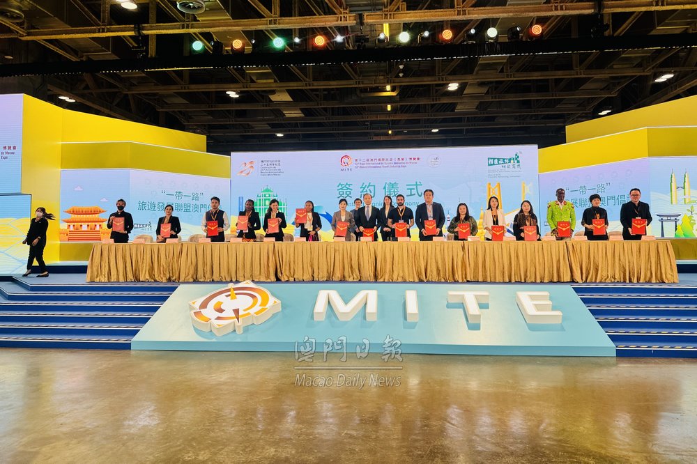 【澳門日報消息】第十二屆澳門國際旅遊(產(chǎn)業(yè))博覽會今日下午五時於旅博會主舞臺舉行簽約儀式,在澳門旅遊局局長文綺華,澳門中聯(lián)辦經(jīng)濟(jì)部副部長楊皓,澳門旅行社協(xié)會會長劉雅煌見證下,逾80個文旅相關(guān)機(jī)構(gòu)和社團(tuán)參與,共分為7個組別,簽訂逾30份涵蓋旅遊、大健康、航空、研學(xué)、婚慶等合作項目,其中17個“一帶一路”國家現(xiàn)場展商及買家同共簽署《旅博會“一帶一路”旅遊發(fā)展聯(lián)盟澳門倡議》。