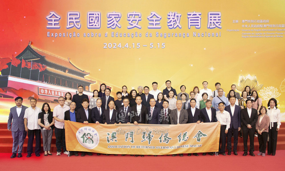 【澳門(mén)日?qǐng)?bào)消息】澳門(mén)歸僑總會(huì)會(huì)長(zhǎng)劉雅煌、理事長(zhǎng)陳曉平、監(jiān)事長(zhǎng)王彬成組織六十名理監(jiān)事一行,昨日到綜藝館參觀“全民國(guó)家安全教育展”,藉此加深了解總體國(guó)家安全,堅(jiān)守和弘揚(yáng)愛(ài)國(guó)愛(ài)澳的優(yōu)良傳統(tǒng)。