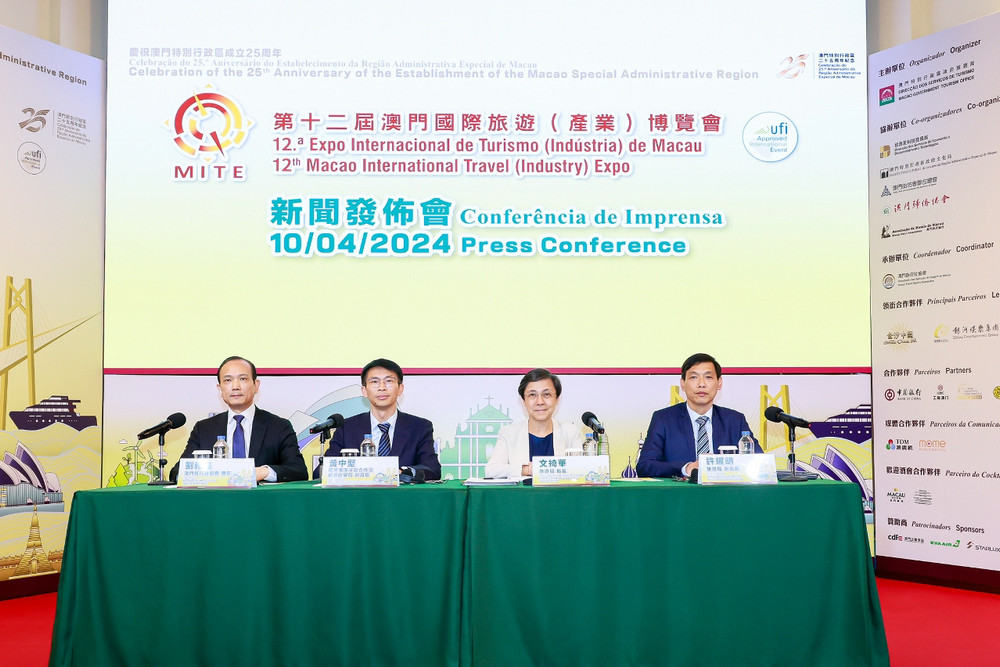 旅遊局聯(lián)同澳門旅行社協(xié)會於今日舉行新聞發(fā)佈會,介紹第十二屆旅博會及相關活動內(nèi)容。旅遊局局長文綺華、副局長許耀明、橫琴粵澳深度合作區(qū)經(jīng)濟發(fā)展局副局長黃中堅以及澳門旅行社協(xié)會會長劉雅煌等出席。